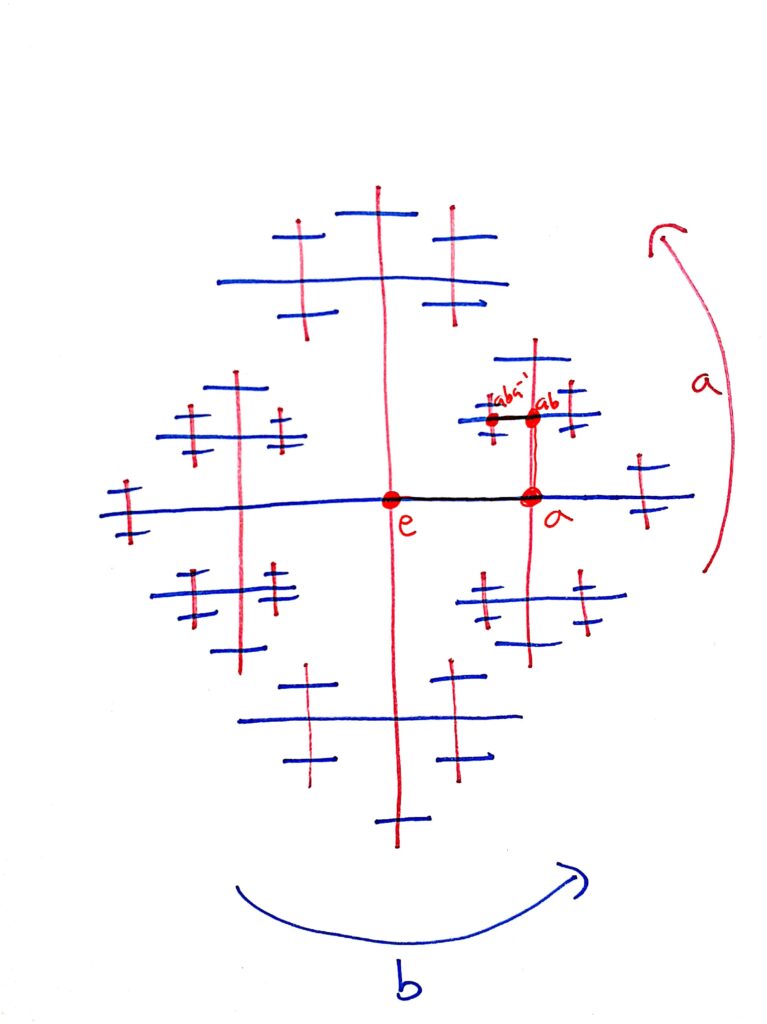 The closure and associativity properties of this group can be verified by inspection. The existence and good behavior of our identity elements can also be relatively checked. It is important to note here that the formation of equivalence classes modulo free reduction is absolutely essential for the group structure, since it is what guarantees that there are inverses for every element, following only from the definition that